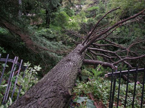 10月9日に台風22号が直撃しました。幸い台風の動きが速く、松戸は可航半円でしたので、温室はすべて無事でそれほどの被害は出ませんでした。最大の被害はこのヒマラヤスギでしょう。