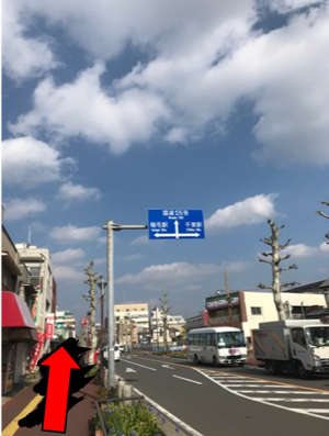 ① 改札から出て左手方向に進みます。踏切とは反対方向。