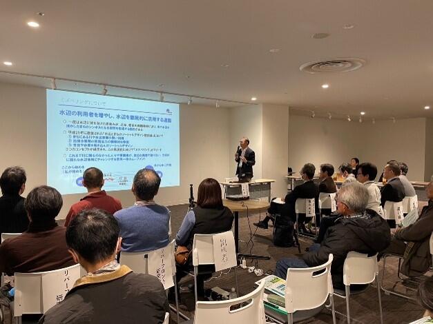 後半のパネルディスカッションでは、国土交通省や松戸市の方々にご登壇いただき、市民の皆さまも交える形で江戸川、ふれあい松戸川の利活用や川を活かした地元松戸市のまちづくりに関する白熱した議論が行われました。
